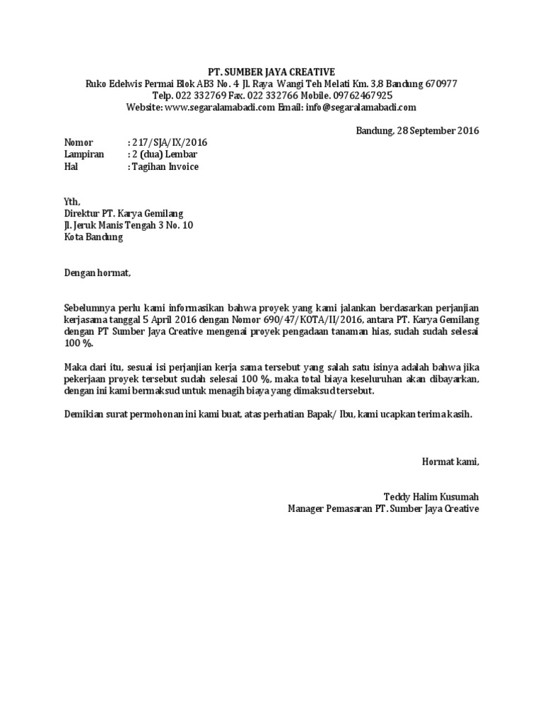 Gambar contoh surat tagihan proyek terlengkap 2019. Berikut ini contoh surat untuk invoice tagihan proyek. Contoh surat hutang piutang uang surat pidana orang. Meskipun inti dalam semua surat penagihan itu sama namun apabila jenis penagihannya berbeda maka isi surat seperti rincian pembayarannya pun juga berbeda. Contoh surat permohonan pembayaran hutang kepada perorangan. Bukan tidak mungkin jika pelanggan lupa untuk membayar kewajiban tersebut sehingga anda perlu mengingatkannya dengan mengirimkan surat penagihan hutang. 1 10+ contoh surat keterangan domisili pribadi, kitas, perusahaan dan lembaga dari kelurahan / desa dan rt/rw; Contoh surat permohonan pembayaran proyek. Contoh surat penagihan pembayaran proyek. Contoh surat tagihan progress proyek have an image associated with the other.contoh surat tagihan progress proyek in addition, it will include a picture of a sort that could be observed in the gallery of contoh surat tagihan progress proyek. 10 contoh surat penawaran kerjasama surat surat pengunduran diri pemerintah Demikian surat penyampaian penagihan pembayaran proyek yang kami persiapkan, atas segala bentuk kerja sama nya, kami mengucapkan terima kasih. Meskipun inti dalam semua surat penagihan itu sama, namun apabila jenis penagihannya berbeda maka isi surat seperti rincian pembayarannya pun juga berbeda.